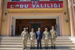 Jandarma Genel Komutanlığına bağlı birliklere denetlemede bulunmak üzere Ordu’ya gelen Jandarma Genel Komutanı Orgeneral Arif Çetin, Vali Seddar Yavuz’u makamında ziyaret etti.