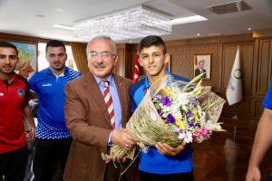 Ordu’nun adını her yerde duyurmaya devam edeceklerinin altını çizen Başkan Dr. Mehmet Hilmi Güler, “Bugün aslanlarımızı ağırlıyoruz. Daha güzel çalışmalar yapacaklar. Ordu’muzun, ülkemizin adını dünyaya duyuracaklar. Hocalarımıza özellikle teşekkür ediyoruz. Sadece sporcu olarak değil ahlaken de erdemli davranışlarla örnek olmanızı diliyorum. Erdemli davranışları geliştirdiğimiz gibi sporu da birlikte düzelteceğiz. Buradan örnek bir nesil çıkacak. Bununla ilgili gece gündüz çalışıyoruz. Sizi canıgönülden kutluyorum. Allah gücünüzü kuvvetinizi arttırsın” şeklinde konuştu.