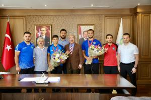 Edirne’de düzenlenen 658. Tarihi Kırkpınar Yağlı Güreşlerinde elde ettikleri 1 birincilik ve 1 ikincilik ile ilimize dönen Ordu Büyükşehir Belediyesi Güreş Kulübü sporcuları Büyükşehir Belediye Başkanı Dr. Mehmet Hilmi Güler’i makamında ziyaret etti.