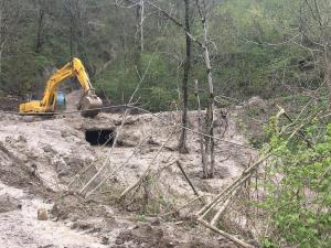 3- Dere taşması ve toprak kayması sonucu tahrip olan diğer mahalle yollarındaki temizlik çalışmaları devam etmektedir.