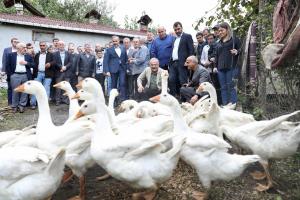 Ziyaret kapsamında konuşan Ordu Büyükşehir Belediye Başkanı Dr. Mehmet Hilmi Güler, “Kazlarımız çoğaldıkça yeni bir kalkınma modeli oluşturacağız. Dağıttığımız kazlar damızlık olduğu için çoğalanlarda damızlık olacak. Tarım şirketimizi kurduk. Lider kadınları yetiştirdik. Bunlar için mağazalar açtık. Başarılı oldukça sayılarını arttıracağız. Amacımız halkımızın doğduğu yerde doymasını sağlamak. Bunun için soğuk hava depolarıyla beraber tarımı turizmle birleştirecek bir entegrasyon oluşturuyoruz. Bundan sonraki kalkınma köyden olacak” ifadelerini kullandı.