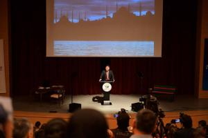 Evrensele ulaşmak için, içinde bulunulan kültüre yaslanmanın şart olduğuna dikkat çeken Başkan Tören, “Bir işe derinlik ve nitelik katmak istiyorsanız, onu sanatla buluşturun. Sanat, idrakin yani bilincin üst seviyesidir. Sanat, aslında alemi, dünyayı, ülkeyi ve yaşadığınız şehri, şehrin insanını, nihayet kendinizi bütüncül bir perspektiften görmenizi, değerlendirme inceliği kazandırır bireye. Sanatın bir başka özelliği de hürriyet bilinciyle atbaşı gitmesidir. Bir ferdin hürriyeti, bir milletin istikbali tabiri caizse onun aleme bakışını şekillendirirken, aynı zamanda sanat perspektifini de şekillendirir. Evrensele ulaşmak istiyorsanız içine doğduğunuz kültüre, üzerinde büyüdüğümüz bu topraklara yaslanmak zorundasınız. Yaslanmayı bırakın, kendi içinize derinleşir gibi bu kültüre, bu toprakların değerlerine derinleşme durumundasınız. Sanat ancak böyle neşvü nema bulur. Shakespeare, Goetheyi, Victor Hugo’yu anlamak istiyorsanız, Bakiyi, Fuzuliyi, Şeyh Galib’i, Mehmet Akif’i merkeze koymalısınız. Evet ruh köklerimiz bunlardır. Bizi evrensele ulaştıracak yöntem de budur. Yani bu toprakların yoğuran değerlerimizi ıskalayarak evrenselle iletişime geçemezsiniz” ifadelerini kullandı.