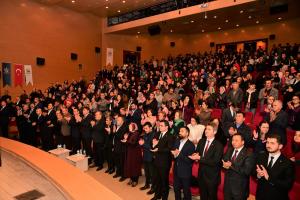 Şehri hem ekonomik hem de kültürel olarak kalkındırma çabası içerisinde olduklarını ifade eden Başkan Tören, “Biz ilk günden bu yana, şehrin bir bütün olduğunu vurguluyoruz her fırsatta. Eğitimden ekonomiye, çevre düzenlemesinden alt yapı hizmetlerine, kültürden sanata bütüncül bir düşünceye, bir perspektife sahip olmak durumundasınız bir şehri yönetirken. İkinci bir husus da, şehrin hikayesine güçlü bir cümle eklemek istiyorsak, içine doğduğumuz, içinde büyüdüğümüz ve bugün de içinde onurlu bir şekilde yaşadığımız milli kültürümüzün ruhunu iyi idrak etmek zorundayız. Şehri evrenselle buluşturmanın şartı da işte bu perspektiftir. Biz, hem ekonomik olarak hem de kültürel olarak şehrimizi kalkındırmak zorundayız. İstiklalden ve istikbalden bahsediyorsak bunu başarmalıyız” diye konuştu.