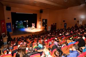 Çocukların ve ailelerinin yoğun ilgi gösterdiği ‘Sevimli Dostlar’ adlı tiyatro oyunu minik öğrencilerin beğenisini topladı. Müzikli olması dolayısıyla seyircilerin de eşlik ettiği oyunda çocuklar doyasıya eğlendi.