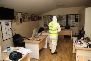 Alanında uzman personel tarafından kurulan ekipler ilçe genelindeki kamu kurum ve kuruluşları, ibadethane, kahvehane, spor tesisleri ve dernekler gibi toplu yaşam alanları ile vatandaşların sıkça kullandığı toplu taşıma araçları ve şehir içi taksileri içinde dezenfekte çalışması gerçekleştirdi. Ekipler bu süre zarfında ayrıca kamu görevi yürüten basın kuruluşları içinde çalışma yaptı. Yapılan çalışmalarla ilçede bulunan televizyon, gazete, ajans ve radyoların stüdyo, haber merkezi, matbaa ve büroları dezenfekte edilerek steril hale getirildi.