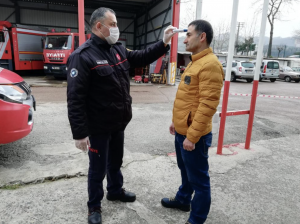 İtfaiye dairesi olarak aldıkları tedbirler hakkında açıklamalarda bulunan daire başkanı Çınkıl, “Ordu Büyükşehir İtfaiyesi olarak 7/24 hizmet veren itfaiye teşkilatımızın her bir çalışanı , gittiği olaylarda, kurtarma operasyonlarında, vatandaşlarla direk temas halinde olabilmektedir. Mesai arkadaşlarımızın sağlığını düşünerek, gerekli tüm tedbirleri alıyoruz. Personelimizin bir arada bulunmamaları için yemek, istirahat ve ortak alanlarla ilgili planlamaları yaparak personellerimize tebliğ ettik. İtfaiye Daire Başkanlığımız tarafından 19 ilçedeki tüm itfaiye istasyonlarımızda personellerimize gerek nöbet esnasında gerekse nöbet harici zamanlarında dikkat etmeleri gereken tüm uyarı ve bilgilendirmeleri yapıyoruz. 19 ilçede hizmet verilen itfaiye hizmet binalarımız, araç gereçlerimiz her gün detaylı şekilde dezenfekte ediliyor. Personellerimizin işe giriş çıkışlarında ateşleri ölçülerek takipleri yapılıyor. Kronik sağlık sorunu olan personellerimizin tespiti yapılmış ve idari izin verilerek tedbiren evlerinde kalmaları sağlanmıştır. Vardiya sisteminde herhangi bir aksaklık yaşanmaması adına asgari personel görevlendirmesi yapılmış ve gerekli görülen birimlerde esnek çalışma sistemine geçilmiştir” dedi