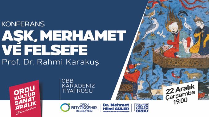 Ordu Büyükşehir Belediyesi “Aşk, Merhamet ve Felsefe” adlı konferans kapsamında Prof.Dr. Rahmi Karakuş’u Ordulularla buluşturuyor.