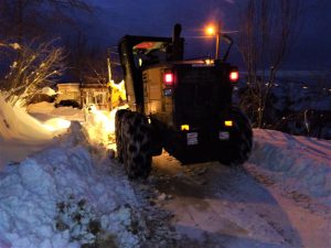 İlçede karla mücadele kapsamında, 4 greyder, 5 beko loder, 2 tuzlama robotu, 2 minipak, 3 kar motoru, 6 kamyonet ve 287 personel ile yürütülen çalışmalar kapsamında 2 hasta için acil müdahalede bulunularak yollar açılırken, 6 cenaze için yollara kar müdahalesinde bulunuldu.
