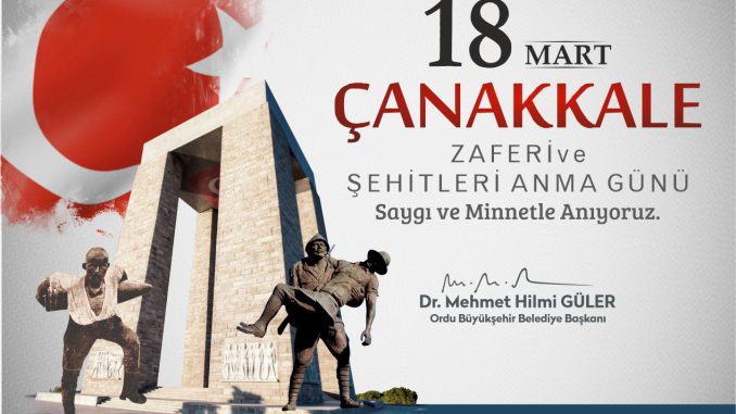 Ordu Büyükşehir Belediye Başkanı Dr. Mehmet Hilmi Güler, 18 Mart Çanakkale Zaferi’nin 107. yıl dönümü ve Şehitleri Anma Günü dolayısıyla bir mesaj yayımladı.