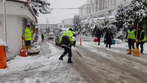 Ordu Büyükşehir Belediyesi ekipleri, kar yağışının trafik akışına engel olmaması için 19 ilçede yoğun mesai harcarken, diğer taraftan yaya ulaşımında sorunsuz sağlanması amacıyla alt ve üst geçitler ile yaya hareketliliğin yoğun olduğu meydanlarda temizlik çalışmaları gerçekleştiriyor. Bu kapsamda Büyükşehir Belediyesi Parklar ve Yeşil Alanlar Dairesi Başkanlığına bağlı ekipler tarafından yürütülen çalışmalarda trafiğe kapalı caddeler, üst geçitler, merdivenler, yürüyüş yolları, hastane giriş ve çıkışları ile yaya geçitlerinde kar küreme ve buzlu alanları temizleme çalışması yapılıyor.