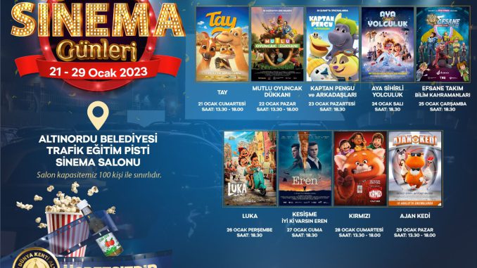 Altınordu Belediye Başkanı Aşkın Tören’in sömestr tatilinde öğrencilere karne hediyesi olarak başlattığı hem öğrencilerin hem de velilerin büyük beğenisini kazanan bir Altınordu klasiğine dönüşen “SİNEMA GÜNLERİ”, sömestr tatili ile birlikte yeniden başlıyor.
