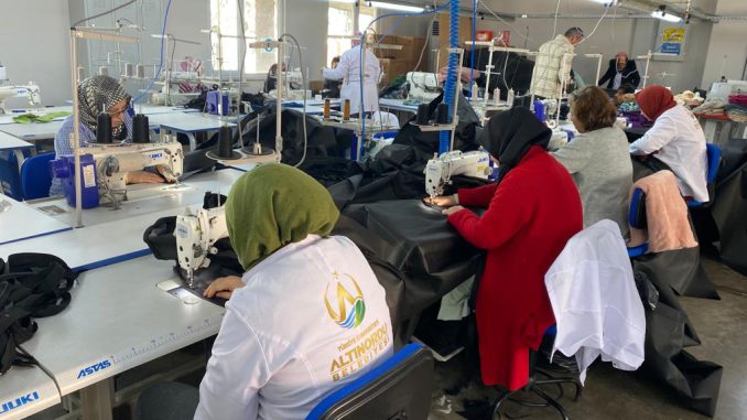 Başkan Aşkın Tören’in hayata geçirdiği istihdam alt yapılarından biri olan Altınordu Hazır Giyim Uygulamaları Merkezi depremzedelerin yaralarını sarmak için üretiyor.